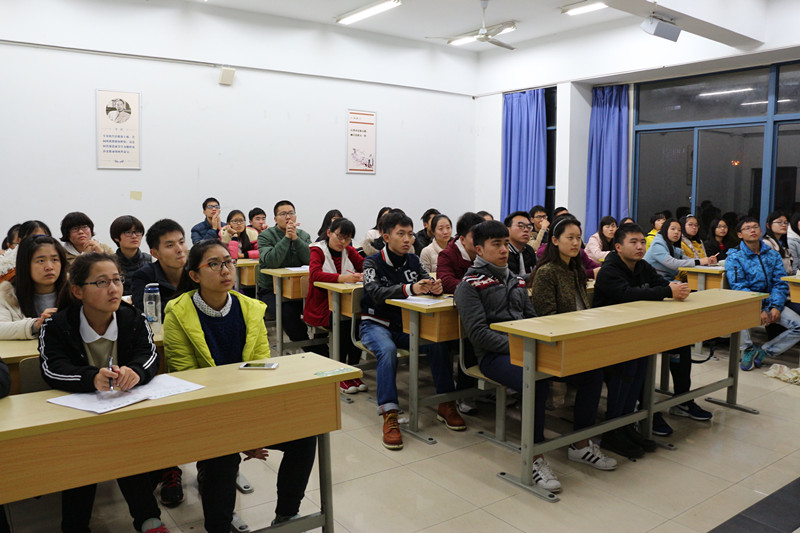 李晓琛同学通过多媒体向我们介绍了“自由旅行者”杨帆和一些国内外的骑行旅游者的故事,并和我们分享了在高考结束后两个月的自由行经历——一辆自行车,一顶帐篷,一个背包。他用自己的亲身经历告诉我们大学生要有自己的思想,并向我们推荐了他认为比较好的书籍。在随后的提问交流环节中,同学们踊跃提问,李晓琛也对同学们的疑惑进行了详细解答。