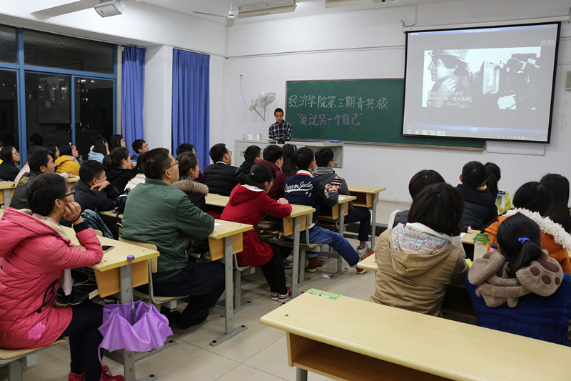 11月23日晚6:30,mg4355vip检测中心分团委秘书处在教4-105开展了第三期青共校第二次交流会。本次交流会邀请了2014级国际经济与贸易4班的李晓琛同学为大家讲述他的自由行经历。分团委秘书处实践创新部部长叶茂坤,宣传调研部部长宋佳,宣传调研部副部长孙轩宇、祁鑫与2015级青共校学员参加了本次交流会。