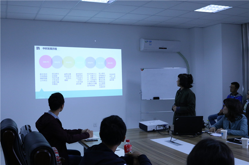首先,总监冯学悟女士为大家介绍了中创市场调研咨询公司成立的历史背景,服务对象以及统计在生活与工作中的用处,并向在坐的学子提问道当初为何选择统计专业,一番交流后,冯学悟女士讲道:“统计是一种工具而不是目的。”