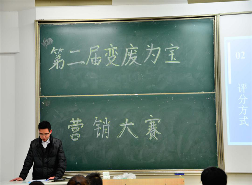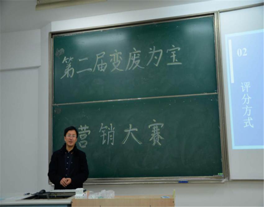 在校团委主办、校科协承办的第二十一届科技节活动的大背景下,mg4355vip官网科协于2016年12月2日在教三313进行了第二届变废为宝营销大赛。本次大赛经院科协特别邀请了mg4355vip检测中心党委董军副书记以及分团委书记王欢老师来作为我们的嘉宾。