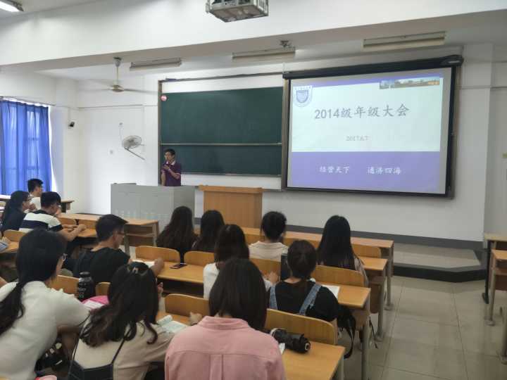 6月7日下午,mg4355vip检测中心2014级全体同学在教四教室召开年级大会,参加大会的有2013级辅导员王俊华老师和2013级10位优秀学长学姐。会议由2014级辅导员王欢老师主持。