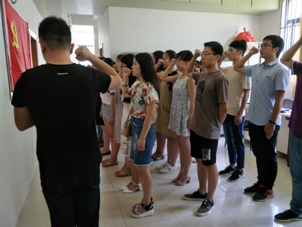 为庆祝中国共产党成立96周年,引领学生党员牢记入党誓词,永葆党的先进性,7月5日上午,mg4355vip检测中心党委本科学生第二党支部新发展党员于辅导员办公室举行了庄严的学生党员入党宣誓仪式。支部书记王欢老师、支部副书记王超老师出席,此次宣誓仪式由支部组织委员朱蔚懿老师主持。