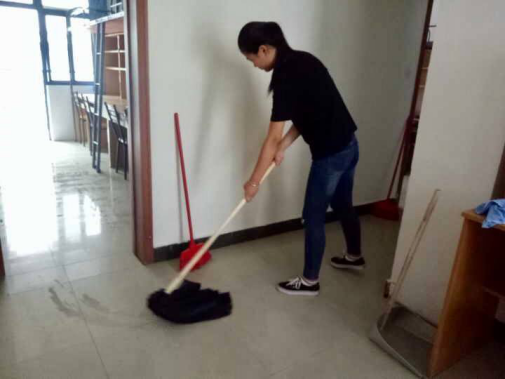同学们两人一组,结伴而行,分头前往荷苑和兰苑。在打扫过程中,同学们积极主动、勇于承担,发扬了“吃苦耐劳”、“不怕脏不怕累”的优良精神,扫地、拖地、提水、擦桌椅、清理垃圾、整理阳台…一个个忙碌的身影在宿舍、走廊间来回穿梭,却秩序井然、井井有条。