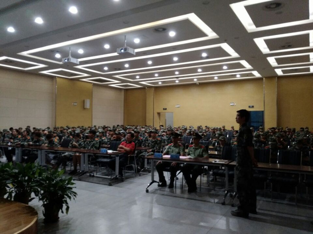 2017年9月10日18:30,mg4355vip检测中心2017级新生军训动员会在学科楼报告厅举行。出席大会的有学院党委董军副书记,新生辅导员王欢老师,武警江苏总队第一支队的阮明刚教官和汪鑫教官,班级助理及全体新生。