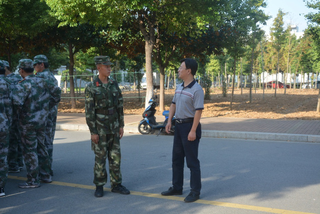 2017年9月14日下午,mg4355vip检测中心党委董军副书记到mg4355vip官网新生军训训练场看望教官和学生。