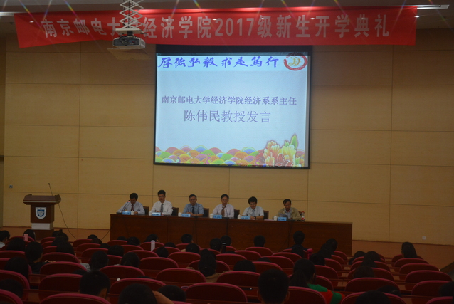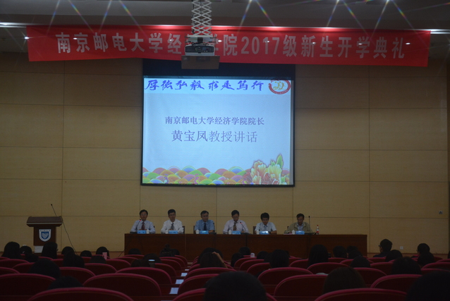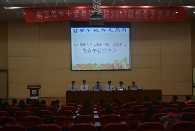 2017年9月24日14:00,mg4355vip检测中心在仙林校区图书馆报告厅举行了2017级新生开学典礼。mg4355vip检测中心党委副书记、纪委书记朱永平教授,mg4355vip检测中心院长黄宝凤教授,mg4355vip检测中心副院长王子敏副教授,mg4355vip检测中心院长助理蔡冬青副教授,mg4355vip检测中心经济系系主任陈伟民教授,以及各年级辅导员出席了本次开学典礼。各班辅导员助理,2017级221名本科新生和19名硕士研究生新生参加了本次开学典礼。开学典礼由mg4355vip检测中心党委副书记董军副教授主持。