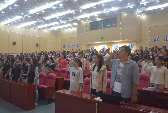 第三部分,成人礼。十八岁,朝气蓬勃如旭日般的青春。十八岁,清新芬芳如甘露般的年华。十八岁,足迹延伸着无限美好的未来。此项仪式由2017级新生韩丰同学带领全体本科新生进行宣誓:以我火红青春,建设锦绣中华;以我壮志激情,创造崭新未来;为中华民族的繁荣富强奋斗终身!
