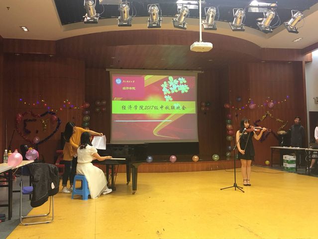 我歌月徘徊,我舞影零乱。2017年9月24日18:30,mg4355vip检测中心2017级新生中秋联欢晚会在大学生活动中心三楼团校教室举行。mg4355vip检测中心党委董军副书记,新生辅导员王欢老师,各班辅导员助理,学生会全体人员以及2017级新生参加了此次联欢晚会。学院还特意为新生准备了月饼、零食以及水果。