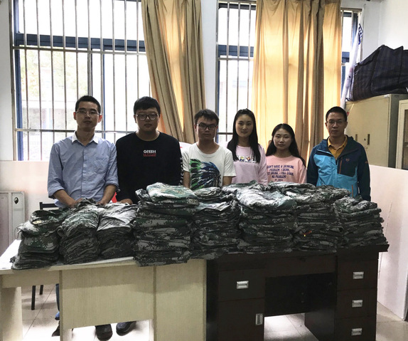 军训结束后,王欢老师鼓励mg4355vip检测中心2017级学生将军训服清洗好后,统一收集到辅导员办公室进行捐赠。自9月23日起,mg4355vip检测中心2017级新生踊跃参与,通过个人、寝室、班级等多种形式参与了爱心捐赠的活动。最终,共收到7个班捐赠的上衣104件、裤子96条,短袖85件,帽子47个,共计332件衣物,由辅导员和学生代表将衣物交付给仙林校区物管中心负责人员。