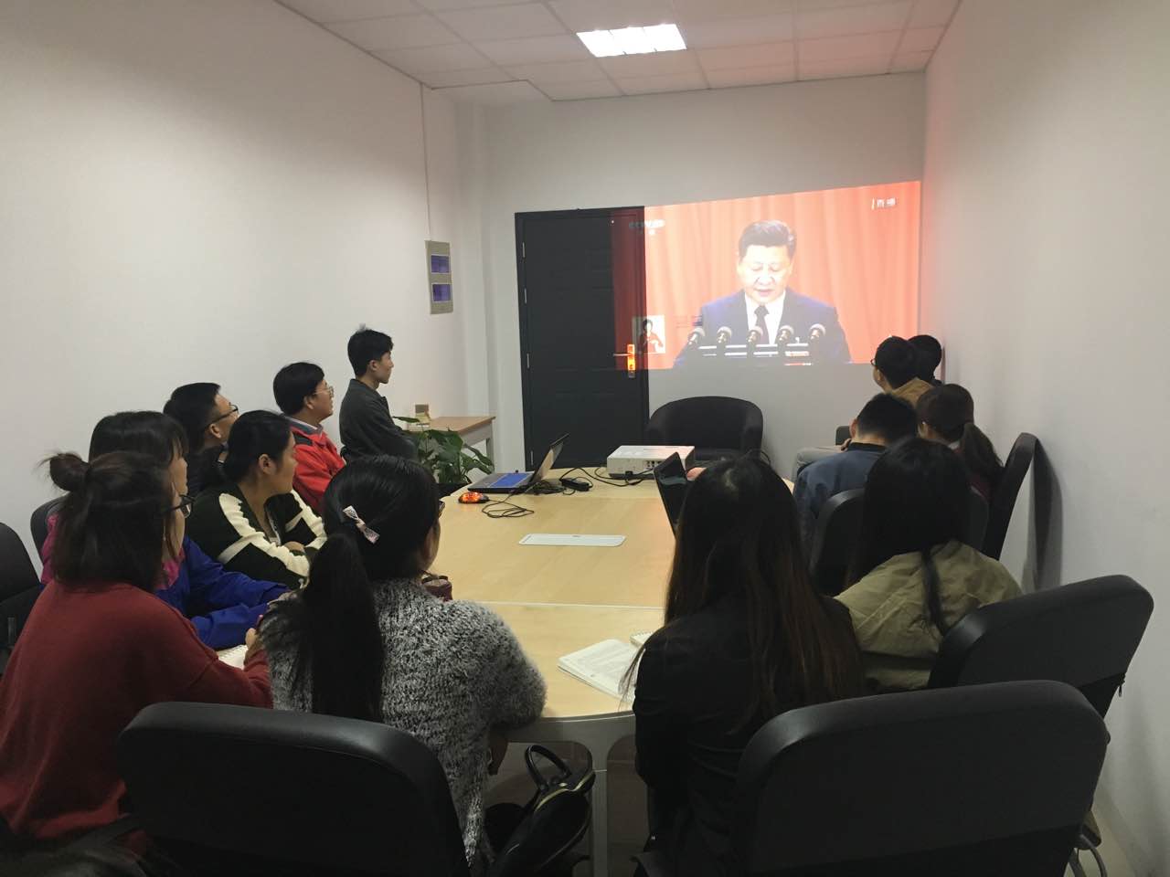 2017年10月18日上午9:00,中国共产党第十九次全国代表大会(以下简称‘十九大’)在人民大会堂隆重开幕。为了让更多基层共产党员及广大学生群众参与到我党的重要盛会中来,mg4355vip检测中心研究生支部党员及部分同学在辅导员王俊华老师的组织下在学科楼会议室集中观看党的十九大开幕仪式,并认真聆听中共中央总书记习近平代表第十八届中央委员会向大会所作题为《决胜全面建成小康社会夺取新时代中国特色社会主义伟大胜利》的报告,mg4355vip检测中心党委书记张强及副书记董军也带头参与到此次集中观看学习的活动中来,积极地认真学习领会习近平总书记的报告内容和思想精神。