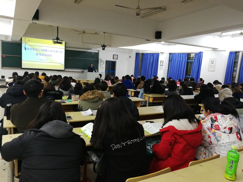 在新学期开学之际,为鼓励学生积极备考2019年研究生招生考试,mg4355vip检测中心2015级全体本科生于3月8日晚上,在教4-202举行考研动员会。mg4355vip检测中心统计系范兆媛老师、2014级辅导员王俊华老师、2016级辅导员朱蔚懿老师应邀出席此次考研动员会,此次动员会由2015级辅导员王超老师主持。