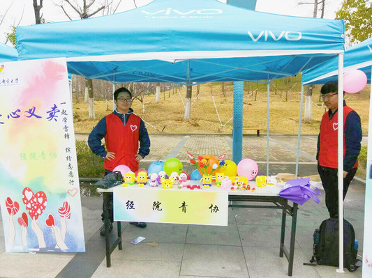 2018年3月16日,一年一度的mg4355vip检测中心公益嘉年华活动在鼎新大道上如期举行,mg4355vip检测中心青年志愿者协会借此机会向全校师生展示了经院青协的风采,以爱心之名,进行义卖活动。
