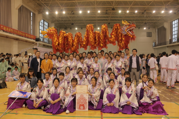 随着mg4355vip官网“扬帆起航,乘风破浪,mg4355vip检测中心,共创辉煌”的响亮口号,婀娜多姿的古典女子们齐步来到众人的眼前。紧接着,两条巨龙从两侧磅礴出海,令评委和观众眼前一亮,留下了深刻的印象。在表演过程中,腕花小云手,单拉山膀、涮腰、打拱、四方步……一招一式,同学们做得有模有样,动作规范到位,时而流畅有力,时而婉约柔美,配合着恰到好处的节律,完成相应的动作,一静一动尽显戏曲之魂,举手投足不忘古典之风。最终,在全体同学和领导老师的共同努力下,在龙狮团学长学姐的热情指导和创意支持下,mg4355vip官网以91.67的分数荣获本次比赛的一等奖。