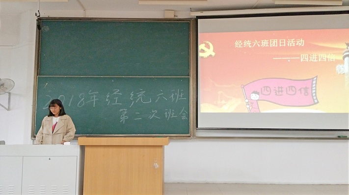 团支书马婷为同学们讲解了“四进四信”的来历、具体内涵以及重大意义,指出青年团员应该牢固树立对党的信仰、坚定走中国特色社会主义道路实现“中国梦”的信念,号召大家行动起来,积极传播青春正能量,在行动中践行“四进四信”文件精神。此外,全体团员还进行了本学期的积极分子推选工作,彭欢和崔津华两位同学高票当选。