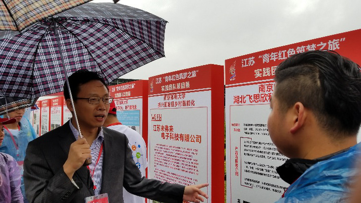 5月19日下午,公司董事长王海飞及项目成员跟随由我校王承宽副校长带队的mg4355vip检测中心代表团前往淮安。启动仪式后,相关项目成员到各自展板前就位,省市领导和嘉宾参观了“青年红色之旅”项目展。教育部高教司理工处处长吴爱华、省教育厅副厅长王成斌在mg4355vip官网创业项目展板前驻足停留,耐心听取公司董事长王海飞讲解项目的内容和社会效益,并不时点头赞同。吴爱华指出,这个项目做的不错,但要真正的把项目做下去,实现精准扶贫的社会效益。