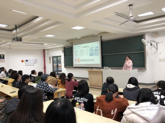 叶怡扬和杨颖琪学姐采用演示文稿的形式,先后向大家介绍了她们踏入大学以来的个人荣誉、实践经历、学习方法以及对学弟学妹们的建议。大二的陆毅学姐向学弟学妹们幽默地分享了她一年以来在社团活动、课内外学习等方面的经历,侧重讲述了她学习过程中的经验以及方法,为同学们提供了一条借鉴和学习的路径。学姐们谦逊的语言里流露出对学弟学妹们的谆谆鼓励,希望大一同学们早做规划,持之以恒,让大学四年变得充实而有意义。