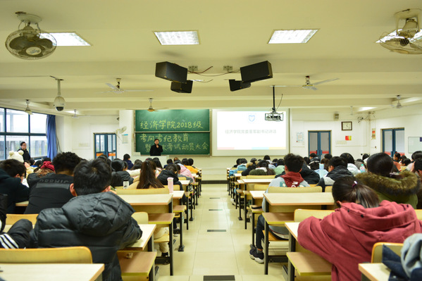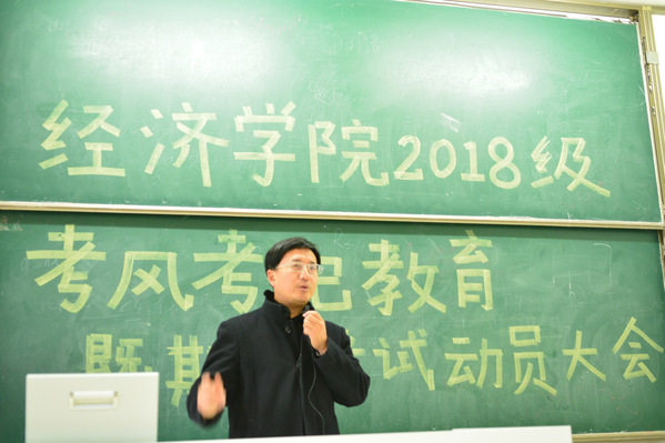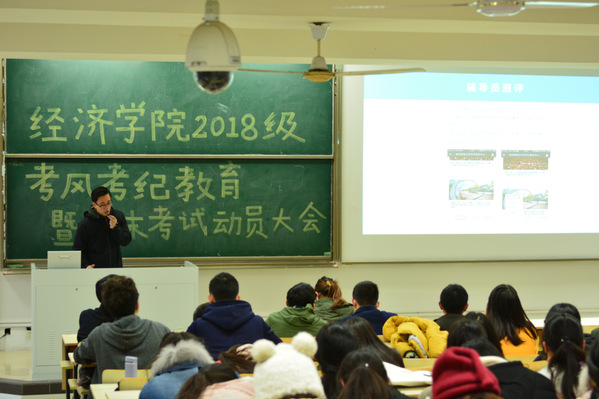 接下来,王珏老师向大家简述了本次年级大会的五项议程,分别为辅导员面对面测评、本学期工作回顾总结、考风考纪教育、后期工作安排和期末考试动员。