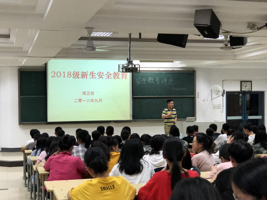 为了加强新生对校园安全知识的了解,更好地进行自我防卫自我防护,2018年9月10日,mg4355vip检测中心特邀校保卫处谢秉宸副处长为2018级新生进行了一场安全教育讲座。mg4355vip检测中心2018级全体新生按时参加并获益良多。