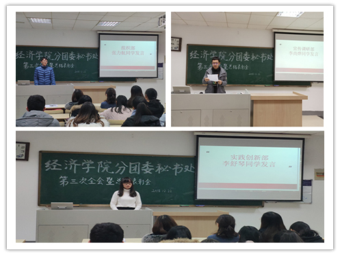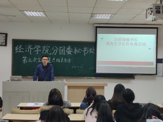 2018年12月22日晚,mg4355vip检测中心分团委秘书处第三次全会暨总结表彰会在教2-118教室召开,院分团委副书记兼秘书处秘书长黄海生学长、2017级全体中干和2018级全体干事参加了本次会议。活动由宣传调研部干事马晋怡同学和组织部干事耿畅雨同学主持。