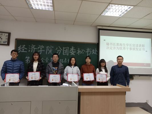 各部门的优秀干事代表总结了这一学期的工作经验与成长收获。张力航同学通过社团积累了经验、增长了知识,并且明白了严谨认真的重要性。李尚烨同学从认识与观念上的转变、知识的增长、能力的提高等方面总结了在宣传调研部的体验。李舒琴同学在发言中讲述了选择加入分团委秘书处的初衷,并分享了在工作中的严格要求对自己带来的成长启示。黄海生学长宣读了优秀干事表彰决定,并为优秀干事颁奖,为全体中干颁发奖品。