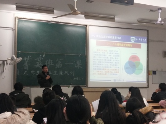 2019年3月1日晚,mg4355vip检测中心第三十四期大学生菁英人才学校暨mg4355vip检测中心学生骨干培训班第一课在教3-205教室顺利举行。本次课程由马克思主义学院硕士研究生导师金久仁老师主讲,主题为《大学生职业生涯规划》。