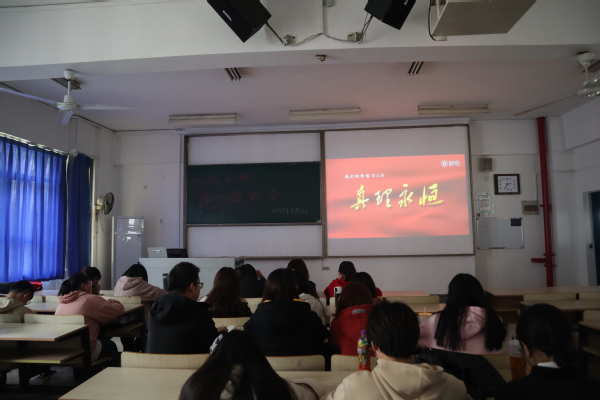 班主任易盈盈老师邀请了我校在读研究生与同学们交流经验。学姐向同学们分享了她的大学规划,提示同学们要尽早确定努力方向,不打无准备之仗,要站在新时代的高度剖析其在不同时代对于社会发展进步和个人成长的重要意义,要立于新风潮的浪尖大胆展望个人对于社会的最终价值。