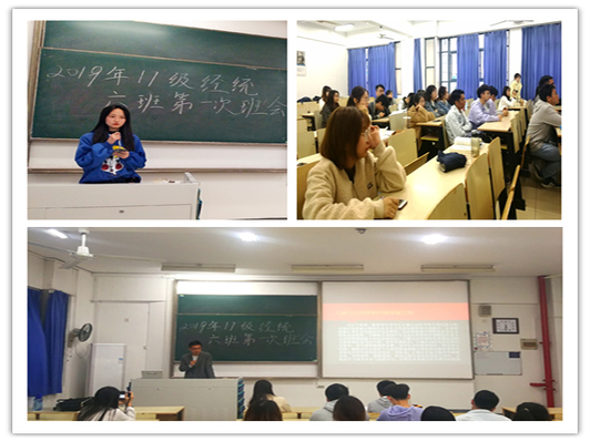 宣传委员胡楠为大家讲述了正值时代枢纽,作为新一代的大学生应该如何从德智体美几个方面完善自身,不忘初心,砥砺前行。顾浩煊同学将时事热点与自身感悟相结合,借华为事件剖析了中美贸易战,认为大家应该认清世界形势,不应盲目骄傲,要正确认识世界和中国发展大势。学习委员林文茜对一年半以来班级学习方面的工作进行了总结,借较好的早读情况和较高的上课到勤率肯定了当前的班风班貌建设,同时也提出大家仍然需要不断的努力和改进,为创建良好班集体贡献个人力量。