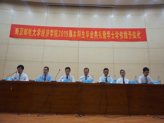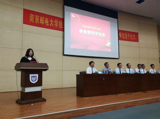 2019年6月19日下午2:00,mg4355vip检测中心2019届本科生毕业典礼暨学士学位授予仪式在仙林校区图书馆四楼报告厅隆重举行。mg4355vip检测中心党委常委、副校长荆晅教授,mg4355vip检测中心院长黄宝凤教授,党委书记张强,副书记董军,副院长景杰、岳中刚、王子敏依次在主席台就坐。系主任、教师代表、家长代表、在校生代表和2019届全体毕业生参加了本次仪式。仪式由院党委董军副书记主持。