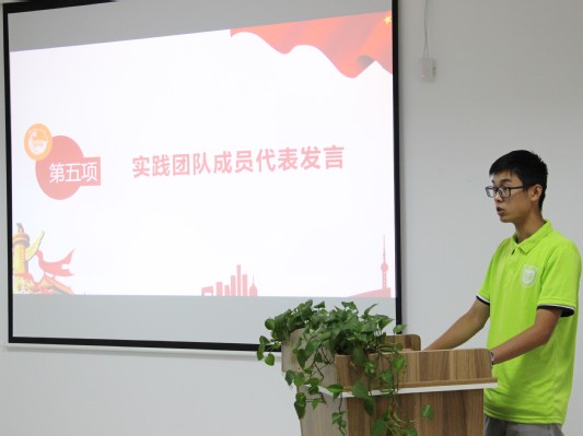 会议的第三项内容,实践团队成员代表赵盈普同学上台发言,代表全体实践成员作出承诺:全体成员将遵循老师指导,加强团队协作,注意实践安全,在实践中锻炼自我,增强技能,提高服务本领,力争取得满意的实践成果。