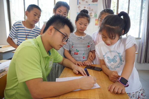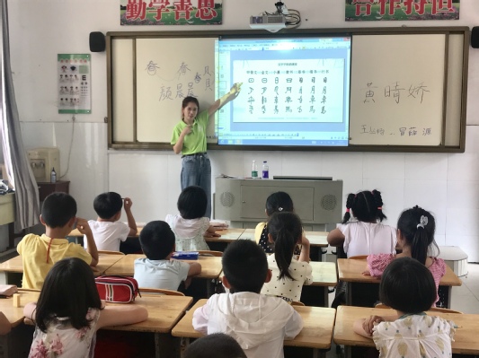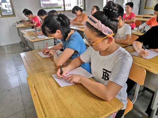 2019年7月16日,mg4355vip检测中心“翰墨飘香进河口,经典文化邮子传”书法教学实践活动在河口小学持续进行。