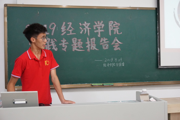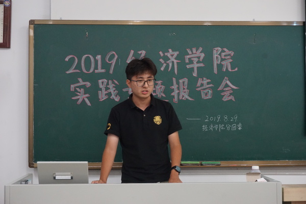 2019年8月29日18:30,mg4355vip检测中心于教2-510召开2019年实践专题报告会。2018级辅导员王珏老师、分团委副书记兼秘书处秘书长黄海生、统计社社长毛婷、龙狮团负责人刘伟涛、青年志愿者协会副主席毋心怡、各班团支书及各实践团代表参加了本次专题报告会。