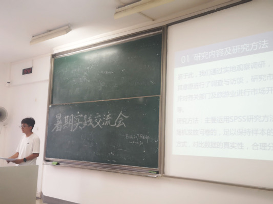 同学们积极发言,纷纷发表自己在实践中的经验和感想。参与统计社实践项目的同学通过制作社会旅游情况调查,体验了统计的详细过程——收集数据,回收数据,分析和总结,在帮助同学们了解社会经济变化的同时也锻炼对数据的整合能力;乡村支教的同学分享自己在艰苦环境中与孩子们快乐学习,虽苦也甜的真实生活体验;在税务局工作了一个月的同学分享其中简单充实的工作经历。