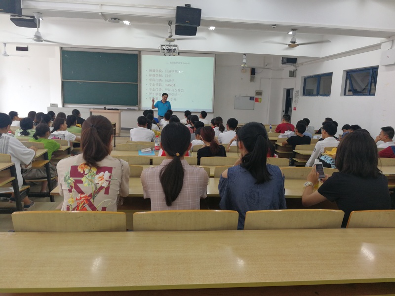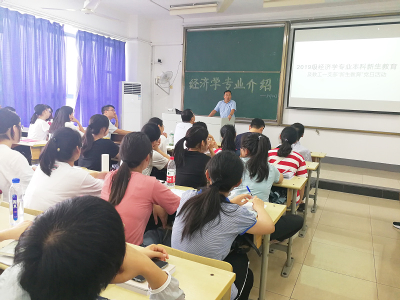 在新生报到首日,mg4355vip检测中心举行了新生家长见面会,为家长介绍学校、学院历史,介绍专业培养目标并答疑解惑;8月29日上午由辅导员王超带队,班级助理组织新生参观大学生创新创业教育基地,并邀请校科协叶晨曦同学现场讲解,29日下午召开新生见面会暨校史讲解,学院分管教学工作的王子敏副院长与分管学生工作的董军副书记为学生讲解大学学习方法与生活,并叮嘱学生养成良好生活习惯尽快适应大学生活;8月30日下午,mg4355vip检测中心各系安排专业带头人为学生开展专业介绍会,经济系党支部书记王峥副教授向2019级经济学专业70名新生同学介绍了经济系和专业概况;学院副院长岳中刚教授为新生做经济学科概述“第一讲”;系里骨干老师结合自身的专业研究方向、讲授的课程等方面内容给新同学学习生活讲案例、提建议;学院副院长景杰教授代表经济统计系为新生介绍专业设置、培养方式以及专业发展前景;国际经济与贸易系主任张昌兵教授结合当前国内外形势与专业培养方案开展专业介绍会;金融工程系主任杨小军副教授结合专业设置背景与课程设置,毕业生去向为新生解读专业。8月30日晚上mg4355vip检测中心举行新生开学典礼暨院徽授予仪式,学院党政领导班子以及班主任老师出席典礼,会后学院邀请保卫处张鹏程老师为新生开展安全教育知识普讲座。军训期间,mg4355vip检测中心结合军训工作以及关工委征文活动,在新生中开展爱国主义教育“我和我的祖国”征文比赛。9月18日,心理指导中心朱彦老师为学院新生开展心理适应教育。9月21日,学院组织新生参加团委举办的梦想公开课,9月23日,学院组织新生参加第十一期邮艺沙龙——《我和我的青春中国》。