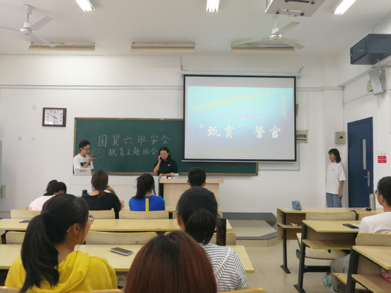 首先,李明哲同学在大屏幕上展示了近期校园信息诈骗的真实案例,由此引入班会的主题——信息及网络安全。随后,团支书吴沁樾同学根据网络诈骗的手段、方式、特点等方面向同学们普及安全知识,并提出自己的建议。吴沁樾发言完毕后,陈潇杨同学也积极上台分享自己关于校园安全问题的意见以及防范措施。之后,余培烁、曹芯鱼、马淏桐、买尔孜亚、朱凡、李明哲六位同学还积极准备并献上了精心准备的安全教育情景剧,让大家进一步了解校园财产诈骗的问题。