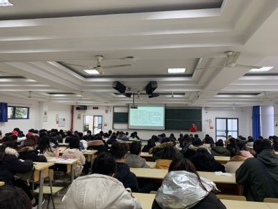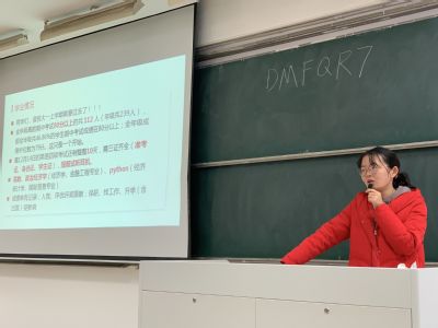 朱蔚懿老师主要从以下三个方面进行展开。首先,朱老师从两个现在同学们面对的问题:“何为迷茫”“何为干事”分别进行解答,指出大家应当面对真实的自我,努力找到自己的目标并尝试,同时做好每一件小事,在自己的岗位工作中进行反思并成长。接着又就同学们当前的学业情况进行分析,对刚刚过去的期中考试和将要面临的英语四级考试及期末考试进行总结与强调。然后对大家的学风情况,未来规划和安全教育方面分别进行指导,指出同学们应当重视考勤问题,又强调了只有绩点和竞赛才是硬道理。最后朱老师引用王小波的一段话表达了对同学们大学四年学习的鼓励与期待。