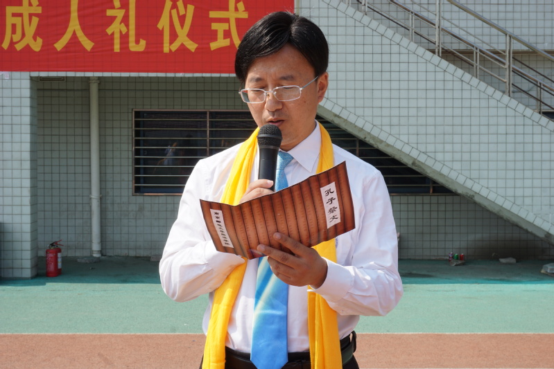 首先,学院党委张强书记为活动致辞,张书记从“礼敬”、“礼成”、“礼颂”三个层面阐述本次活动意义。张书记强调,“礼敬”指孔子是儒家学派创始人,倡导仁义礼智信,是至圣先师。尊师祭孔不仅是尊师重教,更是传承优秀文化;“礼成”指mg4355vip检测中心全体教职人员将秉承“经世济民、信达天下”的院训,努力工作,培养学生成人、成才、成贤,成为德智体美全面发展的社会主义建设者和接班人;“礼颂”指今年是新中国成立70周年,国家历经70年的发展取得了辉煌的成就,今天我们将借助成人礼,礼颂祖国,喜迎国庆。随后,全体奏唱国歌,仪式拉开帷幕。