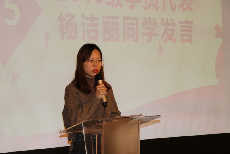 2019级杨洁丽同学作为学员代表发言。通过此次培训,她希望能够发现自我、认识自我,增强责任感,能从大处着眼、小处着手,在日常生活中团结同学,在集体中发挥正能量。