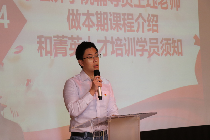 王珏老师做本期课程介绍和菁英人才培训学员须知。王老师从组织管理、课程设置、社会实践和社会考察、主题教育、能力提升、理论学习六个方面介绍了培养要求,使学员对本期培训有了更加全面的了解。