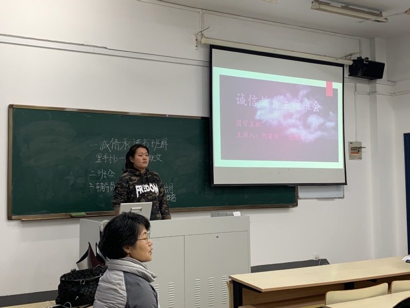 2019年12月18日下午,mg4355vip检测中心B191205班在教2-103举行诚信教育主题班会。班主任张子珩老师和全体同学参加,本次班会由班长赵瑞琦同学主持。
