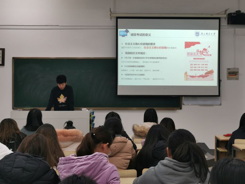 为了全面贯彻落实学校考风考纪要求,营造诚实守信的学风,创造良好的备考氛围以及对本学期班级各项工作进行总结。2019年12月19日下午,mg4355vip检测中心B191206班于教2-103召开诚信教育主题班会暨学期总结会。班主任王丽萍老师及班级全体同学参加,此次班会由班长李明哲同学主持。
