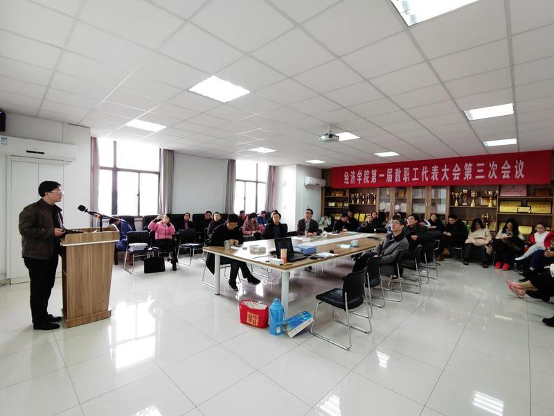 1月11日上午,mg4355vip检测中心顺利召开第一届教职工代表大会第三次会议,全体工会会员参加,会议由院工会主席董军主持。