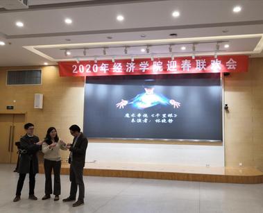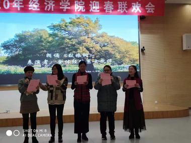 联欢会由全体行政人员、辅导员联合献艺的《龙腾华夏》开场,五人阵祥龙盘绕,荷叶舞翩翩袅袅,北狮亮相送祝福。在一片喜庆欢腾的气氛中,各个系的老师们也依次展示了各自的才艺,经济系全体老师的小合唱《真心英雄》凝聚着集体的赤诚之心,国际经济与贸易系选送的配乐诗朗诵《我骄傲,我是中国人!》充满了家国情怀,经济统计系全体女教师朗诵的中国各地方言和英语荟萃版《致橡树》逗得大家连连叫绝;女高职教师李莉、张玉梅演唱京剧选段,金融系近两年新晋教师张驰、林晓静分别表演日文歌曲独唱、魔术表演,平日里严谨的资深前辈、年轻学术骨干华丽转身,向众人展示了热爱生活、多姿多彩的一面;王丽萍老师的母子联合奏唱,经济统计系教师陈文山和辅导员联袂表演的歌曲伴剪纸,精彩纷呈,形式多样。最后,联欢会在全体院领导高唱的《团结就是力量》中圆满落幕,院领导共同感谢全体教师过去一年的辛勤付出,也祝愿全院上下来年更创辉煌。