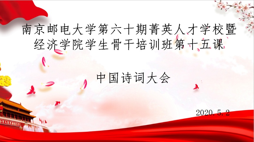 2020年5月2日,mg4355vip检测中心第六十期菁英人才学校暨mg4355vip检测中心学生骨干培训班第十五课在线上顺利举行,本次课程的主要内容是观看和学习《中国诗词大会》传统文化教育片。