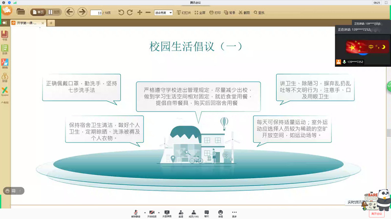 王欢老师首先就《开学第一课——校园防控》的相关内容做了说明,要求同学们要严格按照学校的相关规定,切实做好个人防护;并针对考研、就业、出国等毕业规划做了具体的分析与指导;希望同学们要抓住大四上学期最后的黄金时间,用坚持和拼搏给自己一个交满意的结果。