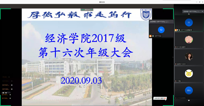 2020年9月3日22:00,mg4355vip检测中心2017级第十六次年级大会在线上举行,院党委副书记兼副院长董军老师应邀出席了会议。会议由2017级辅导员王欢老师主持。