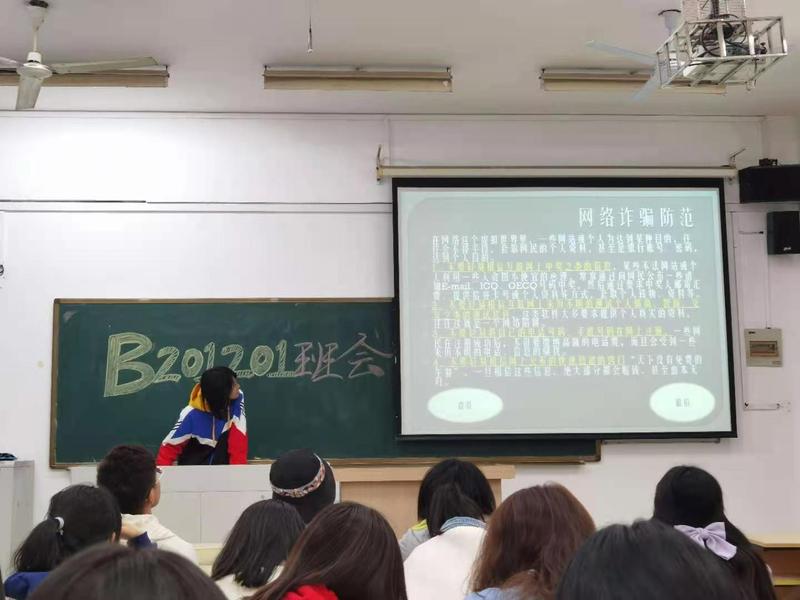 2020年11月4日下午13:40,B201201班在教2-105教室开展了关于“安全教育”主题班会。本次班会由班长李晨昊同学主持,mg4355vip检测中心2020级辅导员杜雯馨老师以及B201201班全体成员参会。