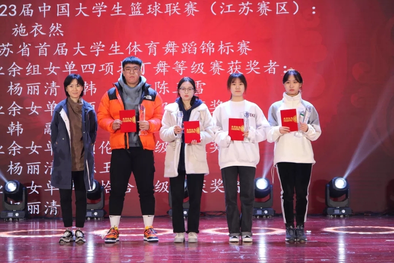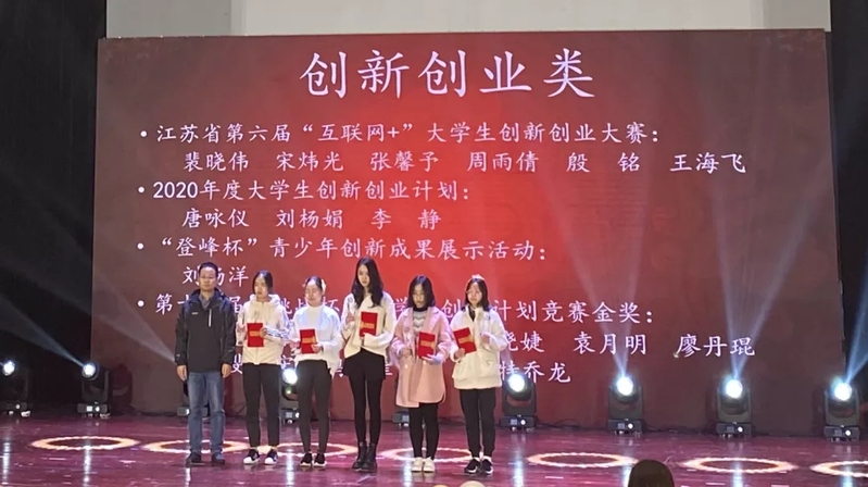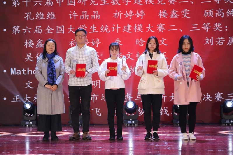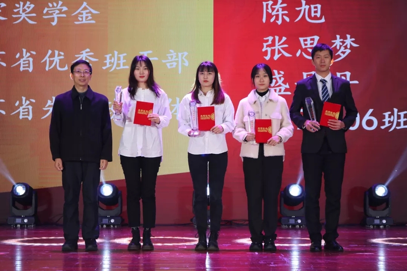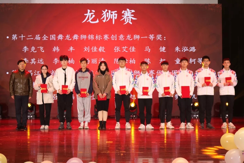 伴随着获奖视频介绍与获奖名单通报,国家奖学金获奖代表、省先进集体和个人代表们、数学建模竞赛类获奖代表、全国大学生市场调查与分析大赛类获奖代表、英语竞赛类获奖代表、创新创业类获奖代表、金融证券类获奖代表、研究生类获奖代表、体育竞技类获奖代表、企业奖学金获奖代表、龙狮团获奖代表先后上台领奖。