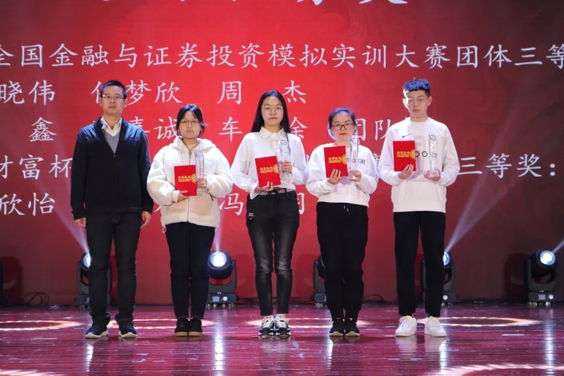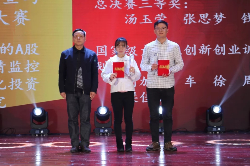 分团委书记王欢老师为金融证券类获奖代表颁奖