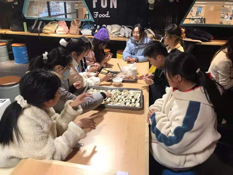 2020年12月21日下午,mg4355vip检测中心B201206班于仙林校区南三食堂开展了“迎冬至”包饺子活动。本次活动由班长霍程阳同学组织,mg4355vip检测中心党委副书记兼副院长董军老师、mg4355vip检测中心张弛老师、B201206班班主任程欣伟老师以及班级全体同学参加本次活动。