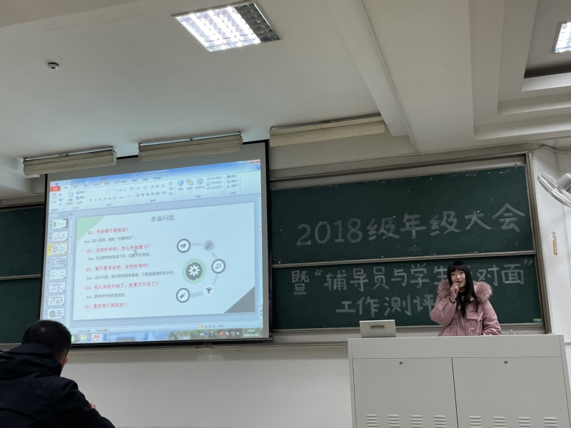 第三项内容,在董书记和王老师的讲解下,2018级学生进行了“辅导员面对面”工作测评及《mg4355vip检测中心大学生学习生活状况调查问卷》的填写。